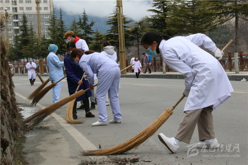 當(dāng)日早上,當(dāng)記者乘車駛?cè)肟刀ㄐ鲁菚r(shí),一群“白衣天使”已在路口兩旁,拿著掃帚、簸箕,背著消毒液熱火朝天地開展“周末衛(wèi)生大掃除”活動?!半m然今天是周末,但是為了充分發(fā)揮愛國衛(wèi)生運(yùn)動的統(tǒng)籌協(xié)調(diào)作用和群眾廣泛參與的優(yōu)勢,以環(huán)境衛(wèi)生整治、糞便污水垃圾處理和消除鼠、蟑、蚊、蠅等病媒生物孳生環(huán)境為重點(diǎn),我們從新城入口開始到華西甘孜醫(yī)院二院一路打掃下來,看到煥然一新的街道很有成就感,作為一名醫(yī)護(hù)人員參與這樣的活動感覺非常有意義?!比A西甘孜醫(yī)院的醫(yī)護(hù)人員易璽拉姆告訴記者。