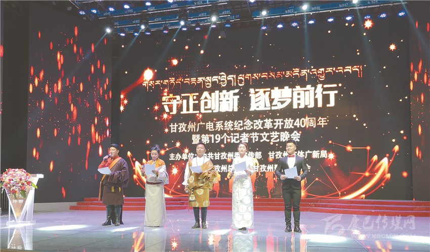 在州廣播電視臺文藝演播大廳舉行的慶祝記者節(jié)文藝晚會。