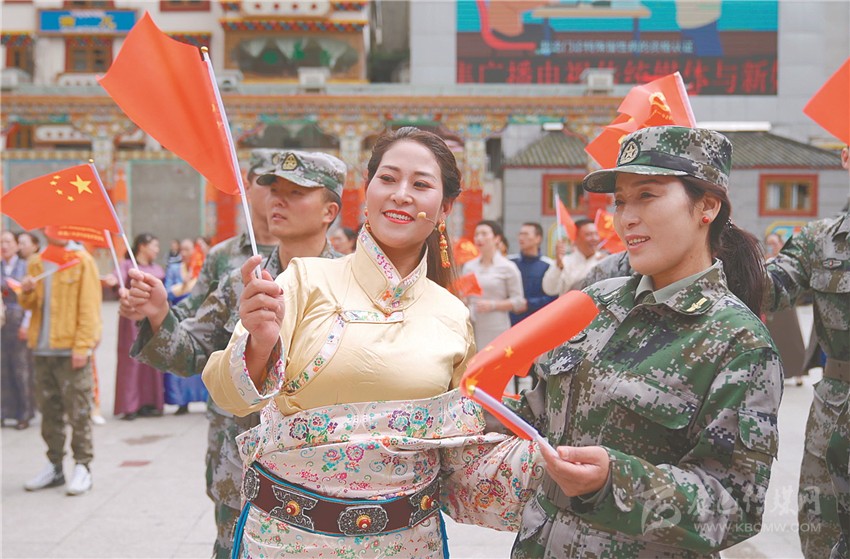 本網(wǎng)訊 “你帶領(lǐng)我們脫貧致富有保障,小康路上我們和你心心相印?!薄拔易钣H愛的祖國,你是大海永不干涸,永遠給我碧浪清波......”9月14日下午,以“感恩奮進新甘孜 同心共筑中國夢”為主題的甘孜州建州70周年快閃活動在康定市舉行,“時代楷模”其美多吉、“溜溜歌者”毛云剛、8位甘孜本土歌手和全州各界代表一道在情歌廣場齊聲高歌,唱響新時代,為“圣潔甘孜”送上誠摯祝福。