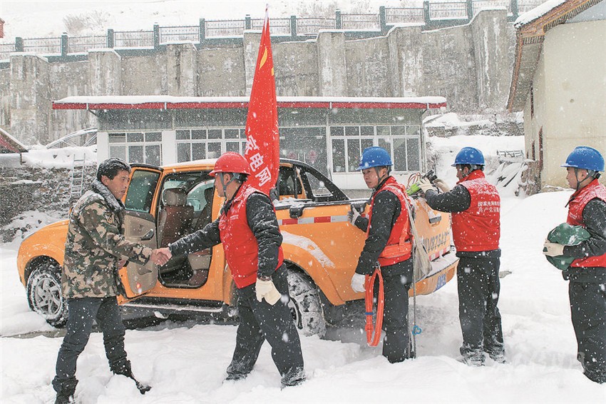 黨員服務(wù)隊在康定2·21雪災(zāi)期間冒雪前往搶修。