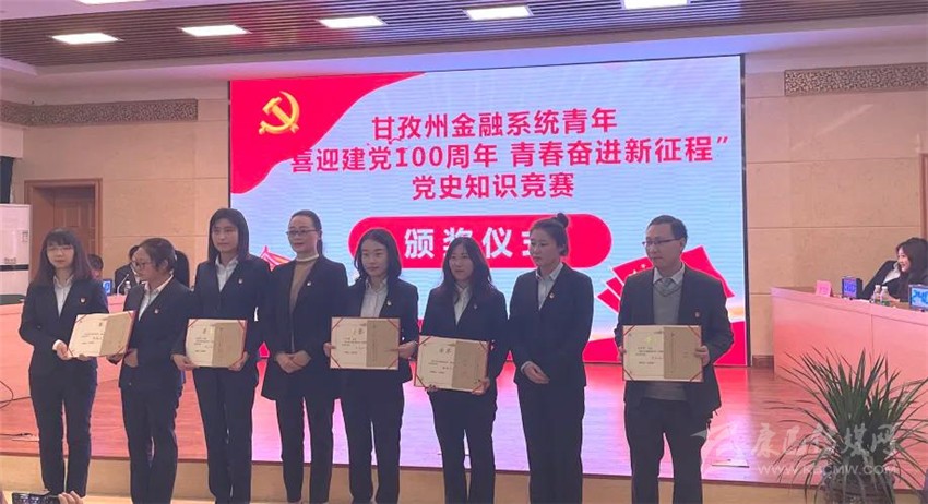本網(wǎng)訊(陳建軍 江承艷)4月27日,農(nóng)行甘孜分行黨史學(xué)習(xí)青年代表競(jìng)賽小組在2021年甘孜州金融系統(tǒng)青年“喜迎建黨100周年 青春奮進(jìn)新征程”黨史知識(shí)競(jìng)賽中一舉斬獲三等獎(jiǎng)。該知識(shí)競(jìng)賽由人民銀行甘孜州中心支行舉辦,甘孜州金融機(jī)構(gòu)15支代表隊(duì)參加競(jìng)賽,農(nóng)行甘孜分行黨委副書記、專家、副行長(zhǎng)周莉萍及其他金融機(jī)構(gòu)負(fù)責(zé)人出席現(xiàn)場(chǎng)并為所有選手加油鼓勁。競(jìng)賽分為初賽和決賽兩個(gè)部分,初賽采用閉卷考試,決賽為現(xiàn)場(chǎng)搶答、必答等,甘孜分行青年代表隊(duì)以98分初賽筆試成績(jī)殺入決賽。在決賽環(huán)節(jié)中,農(nóng)行青年員工代表積極搶答,沉著應(yīng)戰(zhàn),流利回答,獲得裁判好評(píng)以及現(xiàn)場(chǎng)觀眾雷鳴般的掌聲。經(jīng)過激烈角逐,農(nóng)行代表隊(duì)取得個(gè)人第四名和團(tuán)體三等獎(jiǎng)的優(yōu)異成績(jī)?;顒?dòng)最后,全體參賽、觀賽人員齊唱《唱支山歌給黨聽》,表達(dá)了對(duì)共產(chǎn)黨建黨100周年的深切祝福。