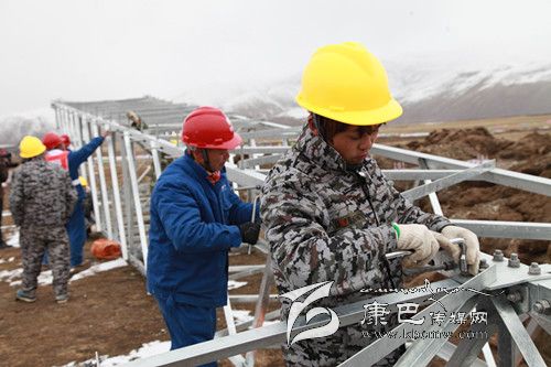 石渠縣海拔高,長冬無夏,空氣含氧量僅為成都平原的45%,電力建設(shè)面臨著“高原高寒缺氧、生態(tài)環(huán)境脆弱、凍土區(qū)沼澤區(qū)施工”等世界性難題。在這里走路稍微快一點都要大口喘氣,更何況在高山雪地上施工,搬運建材,其施工難度可想而知。石渠至洛須110KV工程是國網(wǎng)成都供電公司承擔“電力天路”工程項目中唯一一條110kV電壓等級線路工程,是連接石渠變電站和在建的110kV洛須變電站的主要電力通道,線路全長為64.268km,新建鐵塔187基,沿線海拔高度為3300~4800m,線路多在雪山脊梁及斜坡走線。4月的石渠高原,依然是冰天雪地,寒風呼嘯,在石渠至洛須110KV線路87基塔基澆筑現(xiàn)場,這里海拔4500多米,然而這里卻是一片熱火朝天的場景,一頂頂黃色安全帽下,急促呼吸冒出的熱氣讓每一個人的面目更加模糊。現(xiàn)在內(nèi)地正是春暖花開,春意盎然的季節(jié),而我們的施工現(xiàn)場確實冰天雪地,為了讓廣大農(nóng)牧民早日用上電,四川電建工人們克服高寒、缺氧等惡劣自然條件,正在抓緊施工。110kV線路有的建設(shè)段施工人員靠相互扶持摸索上山,有的施工點一個來回要走6個多小時,材料、工器具都必須靠驢隊及索道運輸。為了搶工期節(jié)約時間工程建設(shè)者克服嚴重的高寒缺氧等惡劣的自然條件吃住在雪山上,累了、呼吸困難時吸口氧,渴了吃一把身邊的“雪糕”。到今年4月30日,“電力天路”石渠境內(nèi)工程進度已完成工程總投資的40%。