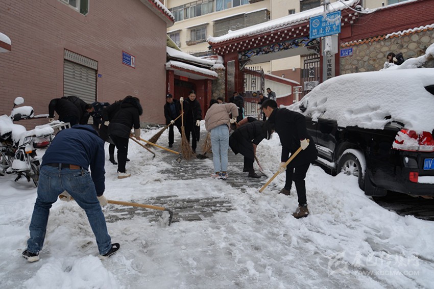 圖為州政協(xié)機關干部職工正在清掃積雪。