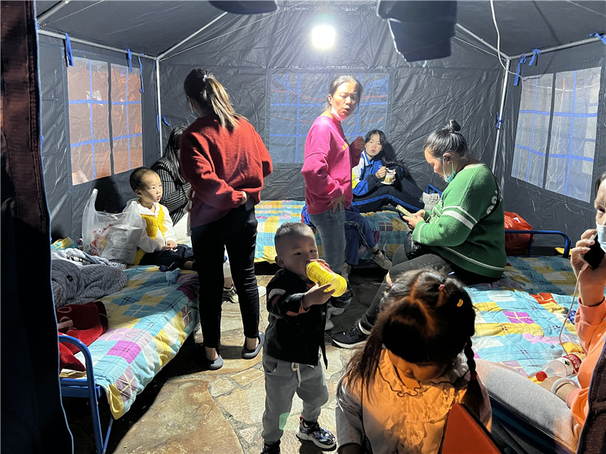 受災(zāi)群眾住進(jìn)了救災(zāi)帳篷。