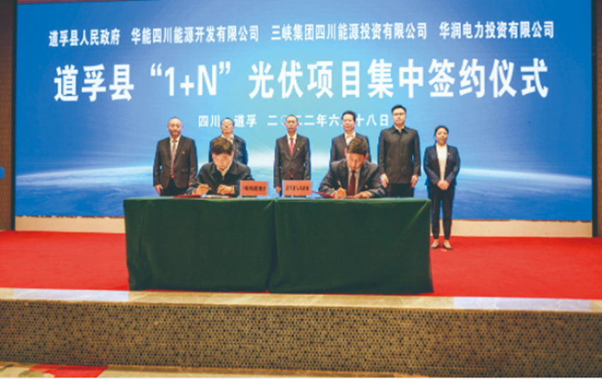 道孚縣“1+N”光伏項目位于道孚縣色卡鄉(xiāng)、龍燈鄉(xiāng)、木茹鄉(xiāng),計劃靜態(tài)總投資75億元,規(guī)劃總裝機容量150萬千瓦,包括亞日I標(biāo)50萬千瓦、亞日II標(biāo)50萬千瓦、龔呂50萬千瓦三個光伏項目。2022年6月18日,道孚縣人民政府與三峽集團(tuán)四川能源投資有限公司在道孚縣舉行亞日Ⅱ標(biāo)50萬千瓦光伏電站簽約儀式,標(biāo)志著該縣向打造“千萬千瓦級清潔能源基地”邁出實質(zhì)性、關(guān)鍵性一步。