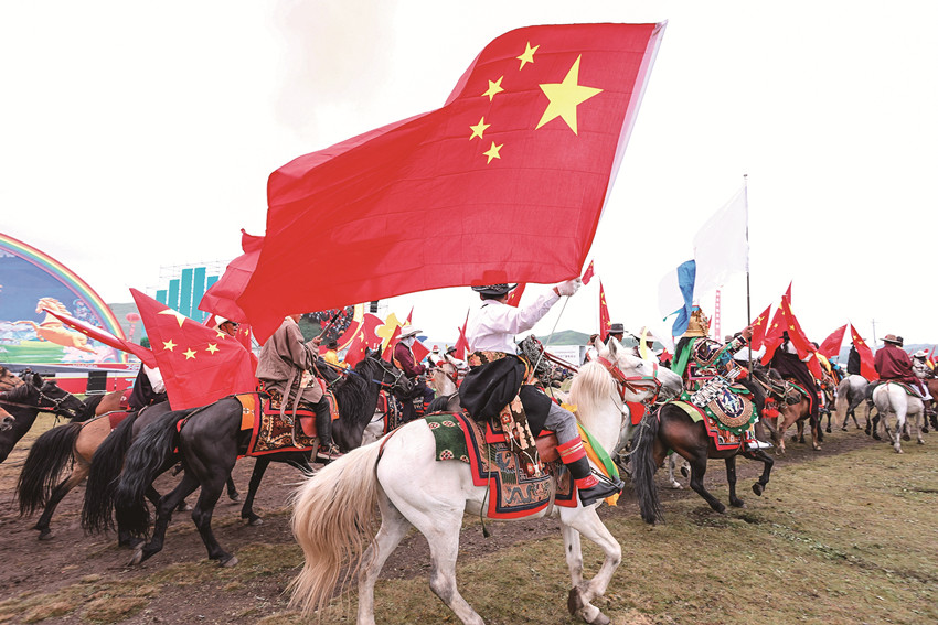 賽馬是藏族群眾娛樂(lè)生活的主要內(nèi)容,是極具特色的民俗活動(dòng),是藏族群眾對(duì)力量、勇敢、智慧的向往和崇拜,也是一項(xiàng)充滿(mǎn)激情的傳統(tǒng)民族體育運(yùn)動(dòng)。近年來(lái),色達(dá)縣利用“金馬節(jié)”這一傳統(tǒng)民族節(jié)日,開(kāi)展了長(zhǎng)跑、短跑和走馬等賽馬比賽,在遼闊的扎青塘草原中央,騎手們與賽馬緊密配合,英姿颯爽,風(fēng)采盡顯,卓越的表現(xiàn)引得場(chǎng)外加油聲、喝彩聲此起彼伏,群馬奔騰的景象震撼人心,讓前來(lái)觀賽的群眾大飽眼福,嘆為觀止。