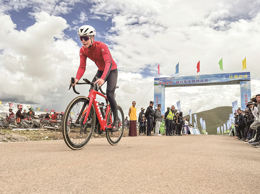 2023年8月11日,作為“福地色達(dá)·金馬之邀”草原游牧文化遺產(chǎn)體驗(yàn)季系列活動(dòng)之一的金馬草原自行車(chē)天路挑戰(zhàn)賽在格薩爾文化藝術(shù)中心鳴槍開(kāi)賽。100多名來(lái)自全國(guó)各地的自行車(chē)專(zhuān)業(yè)運(yùn)動(dòng)員及自行車(chē)愛(ài)好者齊聚福地色達(dá),共赴一場(chǎng)別開(kāi)生面的體育盛宴?!∫晃粎①愡x手激動(dòng)地說(shuō):“我是從湖北武漢過(guò)來(lái)的,第一次參加海拔這么高的比賽,感覺(jué)很好、很棒。一路風(fēng)景超美,美呆了!如果還有這樣的比賽,我一定會(huì)再來(lái)的!”