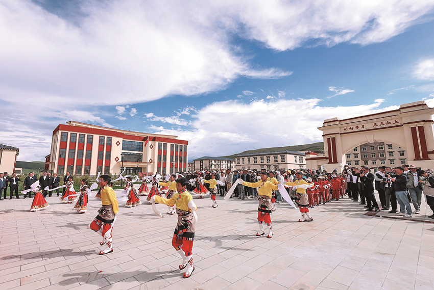 9月12日,走進(jìn)色達(dá)縣椒江希望學(xué)校,寬闊的操場(chǎng)、彩色的跑道、規(guī)范的球場(chǎng),生龍活虎的學(xué)生們正進(jìn)行體育活動(dòng)。