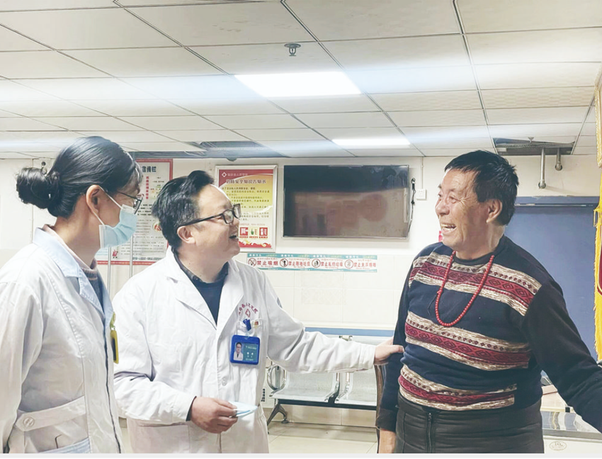 楊杰與患者親切交流。