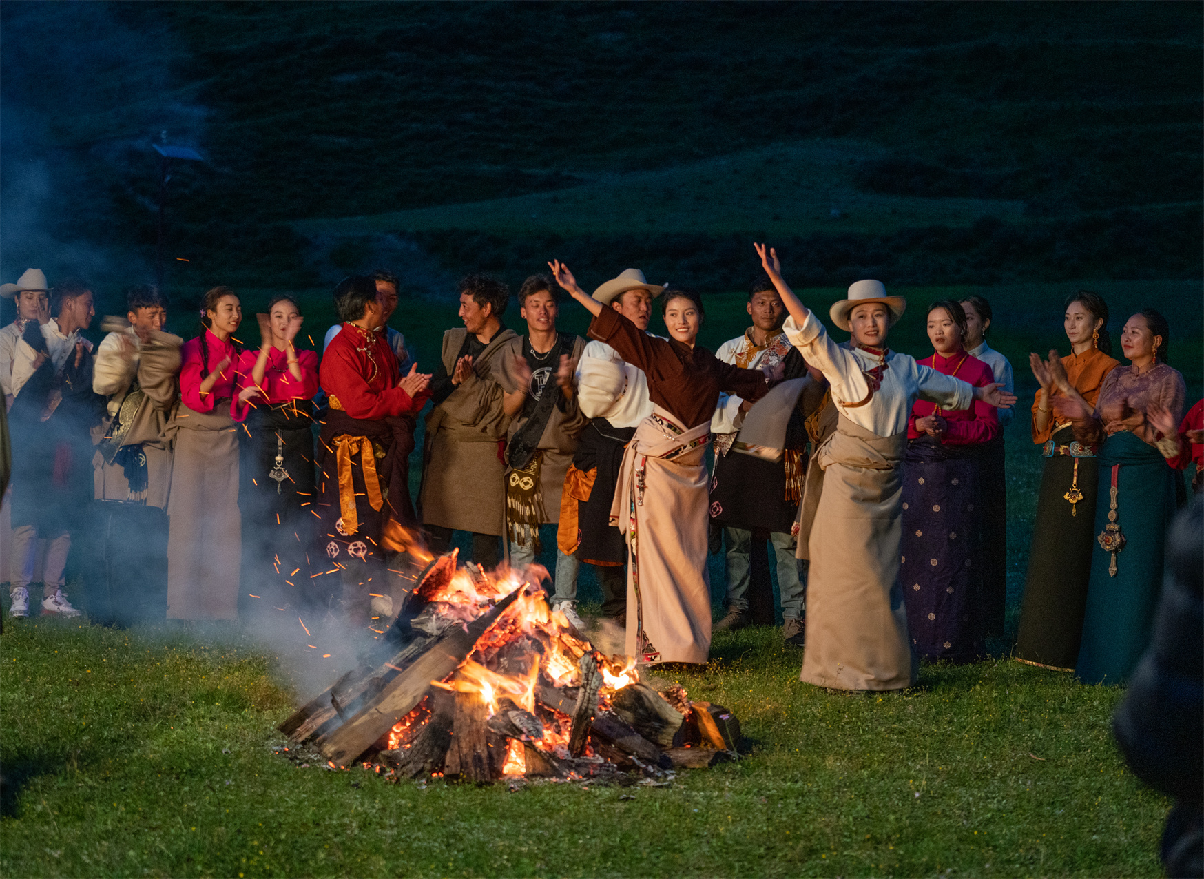 圍著篝火跳鍋莊。