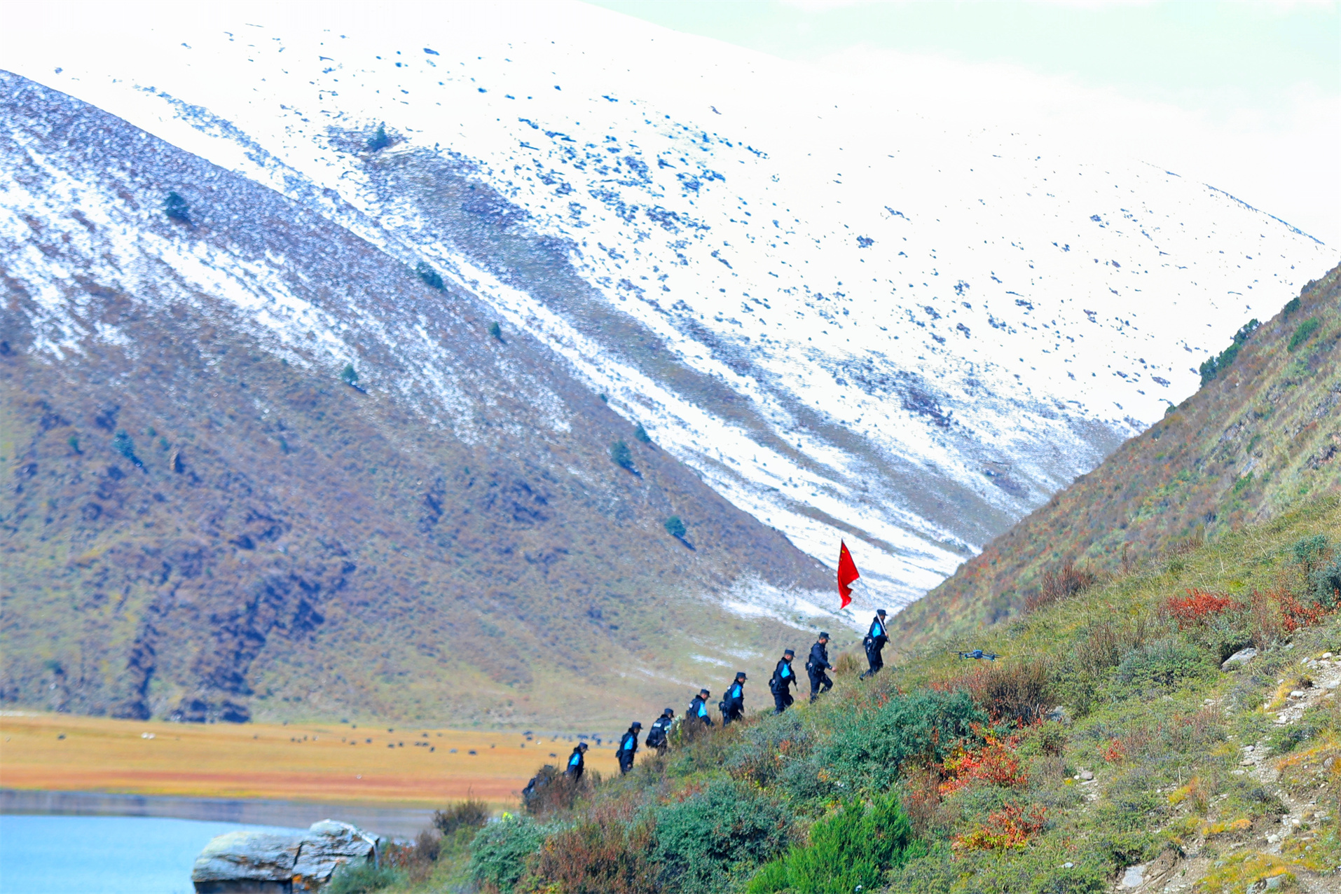 圖為公安干警正在巡護(hù)。