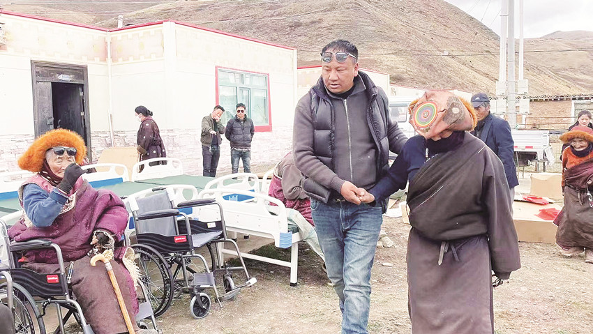 普布澤仁為家庭困難兒童送去學(xué)習(xí)用品。