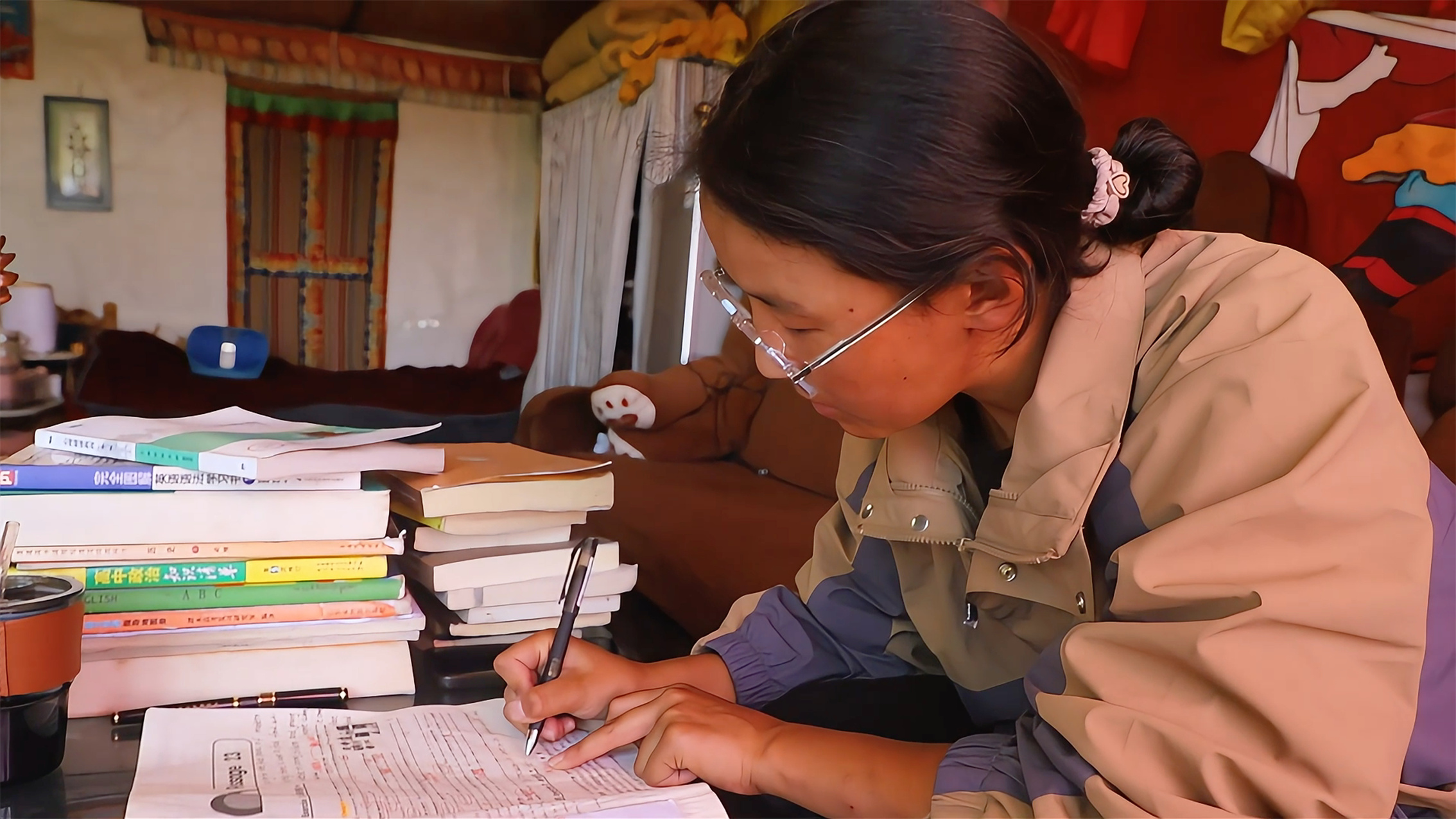 盛夏8月,彼時扎西拉姆已經收到錄取通知書了,按理說她可以好好歇歇喘口氣了??晒P者來到扎西拉姆家時,她正埋頭溫習功課,時而低頭沉思,時而提筆記錄,完全沉浸在知識的海洋中。