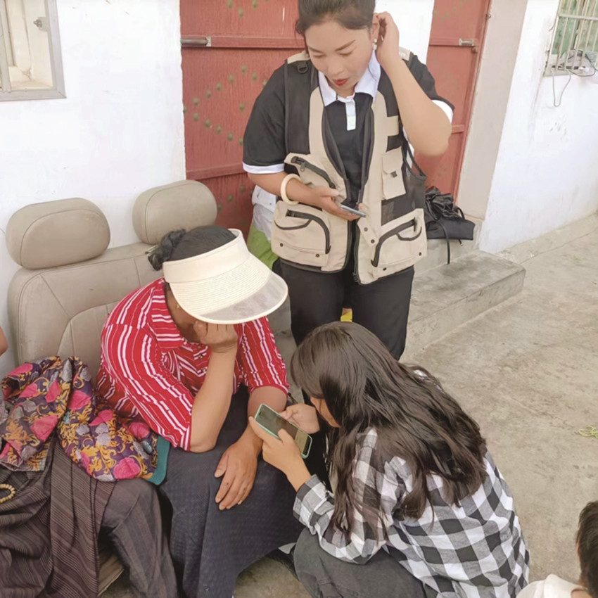 社區(qū)網(wǎng)格員為民辦事。
