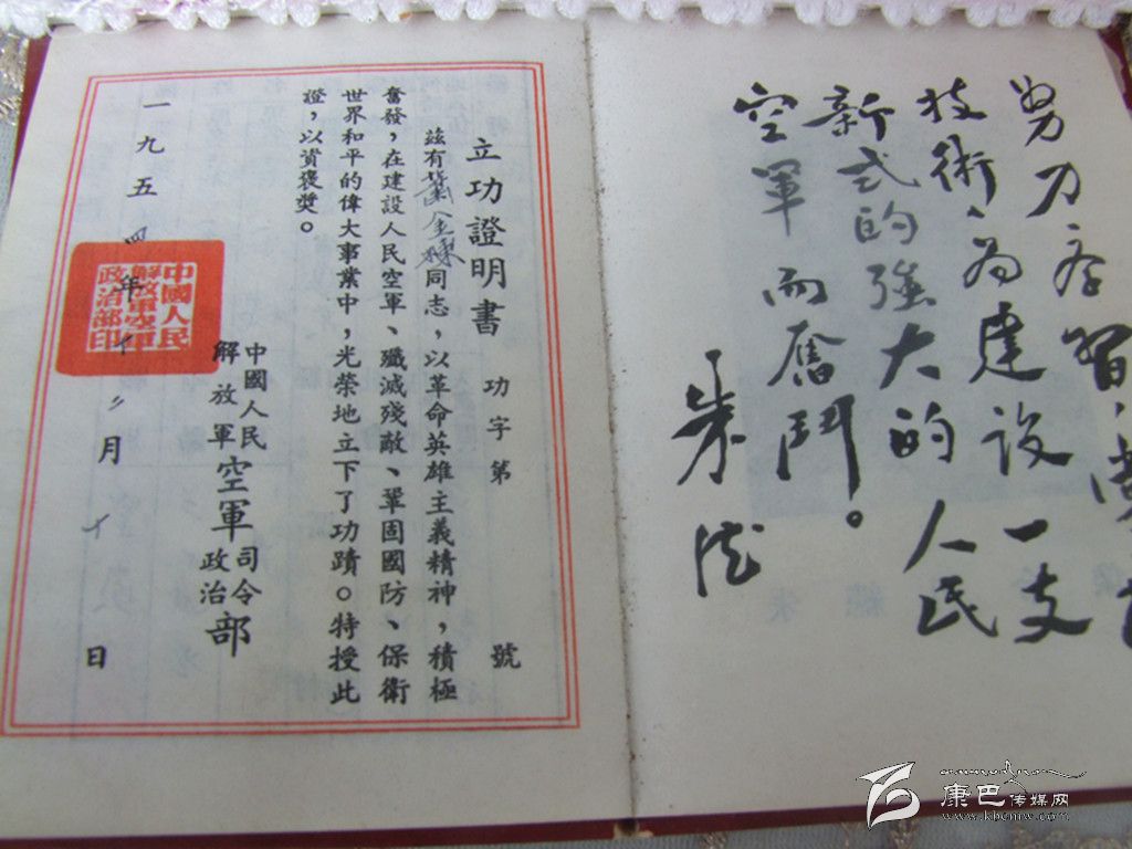 1954年12月10日,該校頒發(fā)的立功證明書上這樣寫道:“茲有肖金棟同志,以革命英雄主義精神,積極奮發(fā),在建設人民空軍、殲滅殘敵、鞏固國防、保衛(wèi)世界和平的偉大事業(yè)中,光榮地立下了功績。”證書上注明為三等功。
