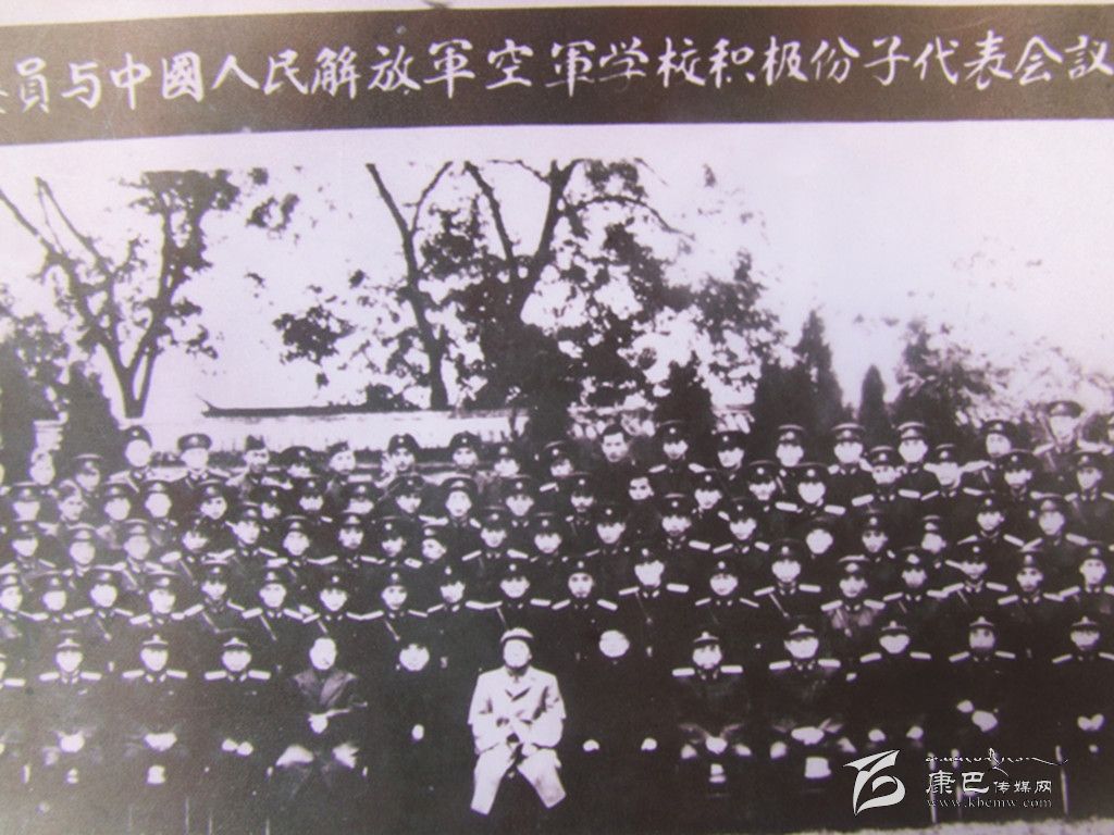 1956年10月28日,是肖金棟永生難以忘懷的日子。作為中國人民解放軍空軍學校積極分子的一員,肖金棟和全體學員在北京中南海懷仁堂受到了毛主席、朱德總司令和賀龍元帥的親切接見并合影。“當時,我就站在毛主席身后的第三排,嗯,就是這個,你看像不像?”肖金棟指著拍攝了距今近60年的老照片興奮地對記者說。由于照片年代久遠,已經(jīng)難以辨認每個人的面部表情了,但大致輪廓依然能夠看清楚。