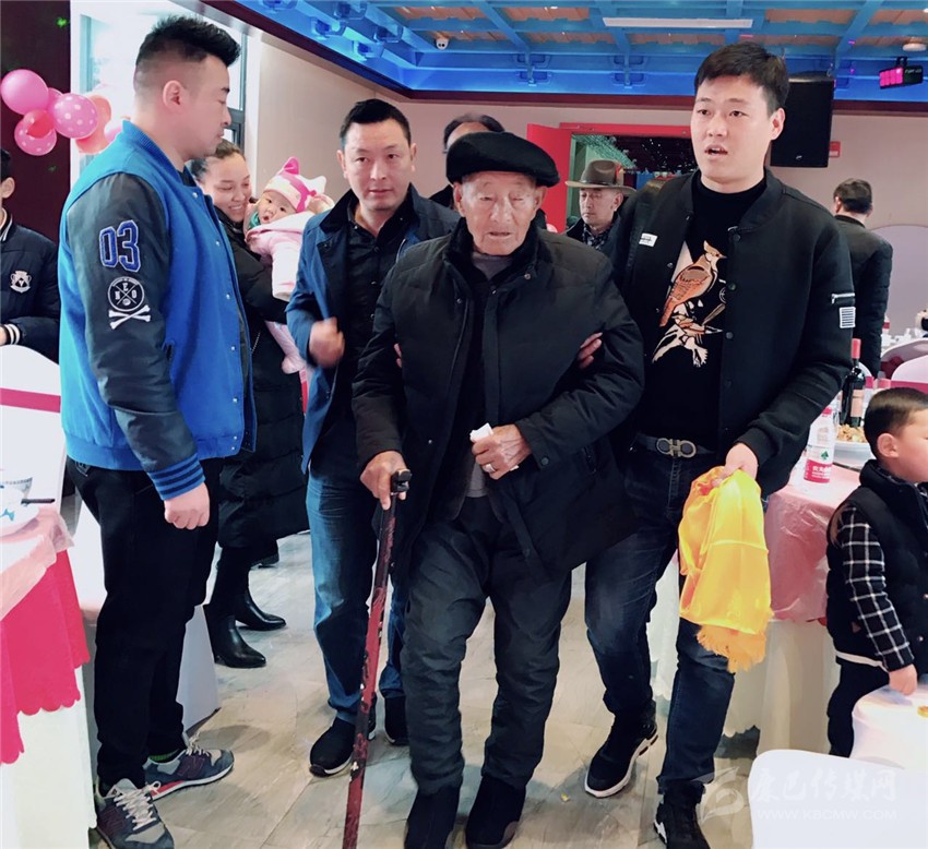 3月5日,在瀘定縣烹壩鄉(xiāng)十里香酒店,按照當?shù)貍鹘y(tǒng),王瑞生的兒孫們提前為他隆重過百歲大壽。雖然已近百歲高齡,但王瑞生精神矍鑠,思路清晰,談吐自如,面色紅潤的他身著簡樸,胸前始終戴著2016年由中共中央、中央軍委頒發(fā)的“中國工農紅軍長征勝利80周年紀念章”,接受親友們的祝福。“祝您健康長壽,開開心心”。親人們不絕于耳的祝福,老人心滿意足,笑容滿面?!昂茫?,我的家人團圓和睦,家庭幸福,是我最大的心愿?!比缃瘢先艘咽撬氖劳?,家人濟濟一堂,親情流淌,老人幸福開懷。