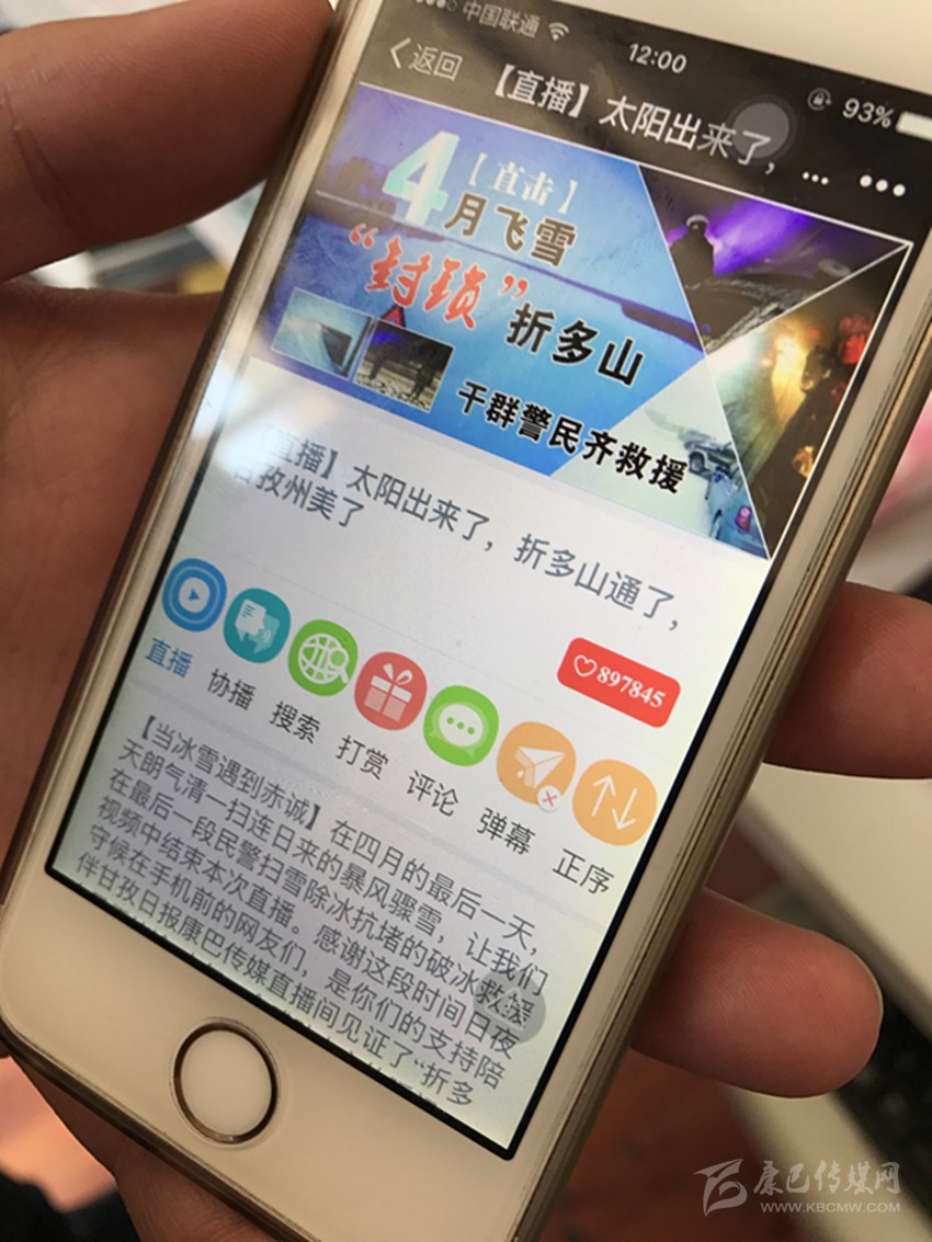 5月2日,隨著5.1小長假結束,甘孜日報對折多山突降大雪、引發(fā)交通堵塞的立體式報道告一段落,作為突發(fā)災害性天氣,甘孜日報行動迅速,傳統(tǒng)媒體、掌上直播、康巴微信、甘孜發(fā)布等全媒體齊上陣,掌上直播《4月飛雪“封鎖”折多山,干群警民齊救援》,以其即時消息、圖片、視頻等海量信息,引發(fā)點擊“狂潮”,不到兩個小時,點擊量即超過35萬人次,至小長假結束,點擊量近百萬人次;康巴傳媒微信《4月飛雪,千人馳援》點擊量超12萬人次;甘孜日報社對折多山大雪現(xiàn)場立體交叉式直播被新華社、中國新聞網(wǎng)、華西都市報封面新聞、網(wǎng)易新聞頻道等州外媒體分別轉載或引用相關報道。我州應急措施有力、有序,得到眾多媒體和網(wǎng)友紛紛點贊。州委常委、宣傳部長相洛稱贊甘孜日報在這次直播中,行動迅速、引導有力,既客觀報道了突發(fā)性災害天氣對我州交通和旅游帶來的不利影響,更突出報道了我州和康定市采取的各項應急措施,是一次媒體融合的有益嘗試。