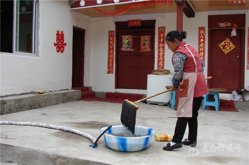 賀姚珍在做家務(wù)事。