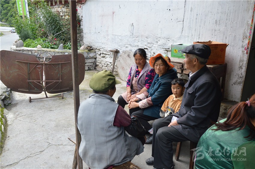 賀姚珍(左一)和鄰居在一起拉家常。