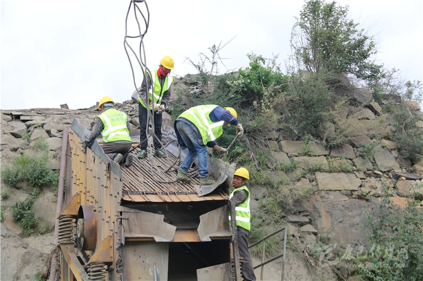 8月25日,塔公村采砂場(chǎng)早已停止了一切生產(chǎn)。記者在現(xiàn)場(chǎng)看到,起重機(jī)正將砂場(chǎng)里10多米長(zhǎng),非常笨重的傳送帶拆放在地上。數(shù)十名村民和工人一起,用挖機(jī)、吊車(chē)、氣割機(jī)等設(shè)備將生產(chǎn)砂石的設(shè)備進(jìn)行拆解,拆除的生產(chǎn)設(shè)備、機(jī)械零件整齊地?cái)R置一旁,砂場(chǎng)拆除工作正在安全有序進(jìn)行。望著曾經(jīng)給村民帶來(lái)巨大效益的設(shè)備被拆解在地上,塔公村村主任伍金多吉流下了傷心的淚水。
