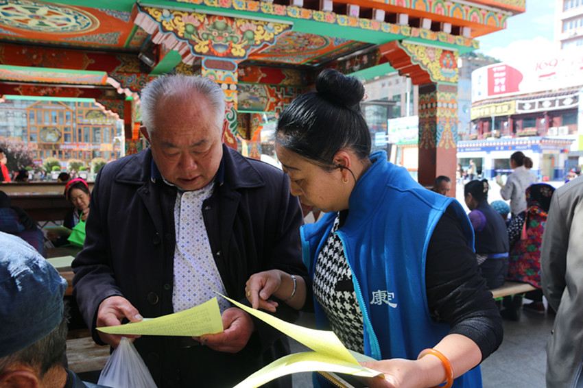 6月5日,網(wǎng)格員姚永紅與同事們?cè)谇楦鑿V場(chǎng)發(fā)放惠民政策宣傳資料。67歲的黃德康老人拉著網(wǎng)格員的手,不停地說(shuō)著感謝的話。黃德康至今未婚,孤身一人,年輕時(shí)在外打工,因年老體弱,2015年底回到康定前往社區(qū)報(bào)到,網(wǎng)格員了解到他的具體情況后,幫助他申請(qǐng)了低保,因?yàn)闆](méi)有住房,2016年底,網(wǎng)格員同步給他申請(qǐng)了“三無(wú)戶”和廉租房。“如果沒(méi)有網(wǎng)格員的幫助,我怕要露宿街頭了。我生病住院,網(wǎng)格員像我的親人一樣在我身邊照顧。我到社區(qū)去,社區(qū)領(lǐng)導(dǎo)和網(wǎng)格員哪怕自掏腰包,也要讓我吃飽。我現(xiàn)在有540元左右的惠民資金收入,社區(qū)領(lǐng)導(dǎo)和網(wǎng)格員還經(jīng)常給我送來(lái)生活用品,我非常感謝網(wǎng)格員對(duì)我的關(guān)愛(ài)?!秉S德康說(shuō)起網(wǎng)格員對(duì)自己的幫助,不禁熱淚盈眶。