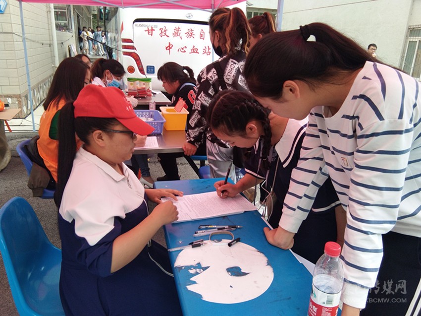 四川民族學(xué)院師生和志愿服務(wù)隊(duì)在校園內(nèi)開(kāi)展無(wú)償獻(xiàn)血活動(dòng)。