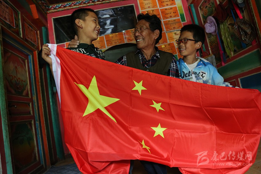 8月5日早晨7時(shí)50分,鬧鈴響起。巴塘縣蘇哇龍鄉(xiāng)絨岔絨村73歲的藏族老人翁修從臺(tái)柜上拿起疊得整整齊齊的國(guó)旗,登上樓頂,把國(guó)旗穿進(jìn)旗桿后,靜靜地等待著;8時(shí),老人揮舞國(guó)旗,高唱國(guó)歌:“起來(lái),不愿做奴隸的人們……”