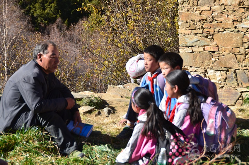 雖然代課教師的工資從當年的每月200元漲到了現(xiàn)在每月800元,然而在以市場經(jīng)濟為主體的社會里,800元工資的人群屬于低收入群體。盡管如此,阿布里老師依然早出晚歸,在那條他閉上眼都能走的小徑上來回奔波,依舊嘔心瀝血教書育人,那郎朗的讀書聲在藏寨的上空久久回蕩。每天上學(xué)放學(xué)路上,孩童們在阿布里老師的帶領(lǐng)下,在小徑上排著整齊的隊伍,撒下一路歌聲一路歡笑。