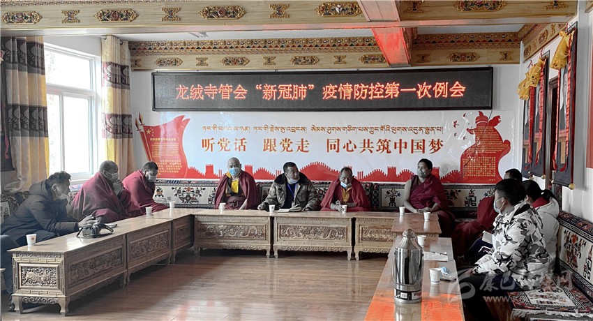 2019年、2020年冬春之交,新冠肺炎疫情侵襲中華大地。1月24日,得榮縣全力出擊、全面抗疫,作為寺管會(huì)主任的洛絨益西切實(shí)擔(dān)負(fù)起龍絨寺的疫情防控工作,召集寺管會(huì)所有干部和民管會(huì)成員部署防控工作,全面打響了龍絨寺疫情防控阻擊戰(zhàn)。