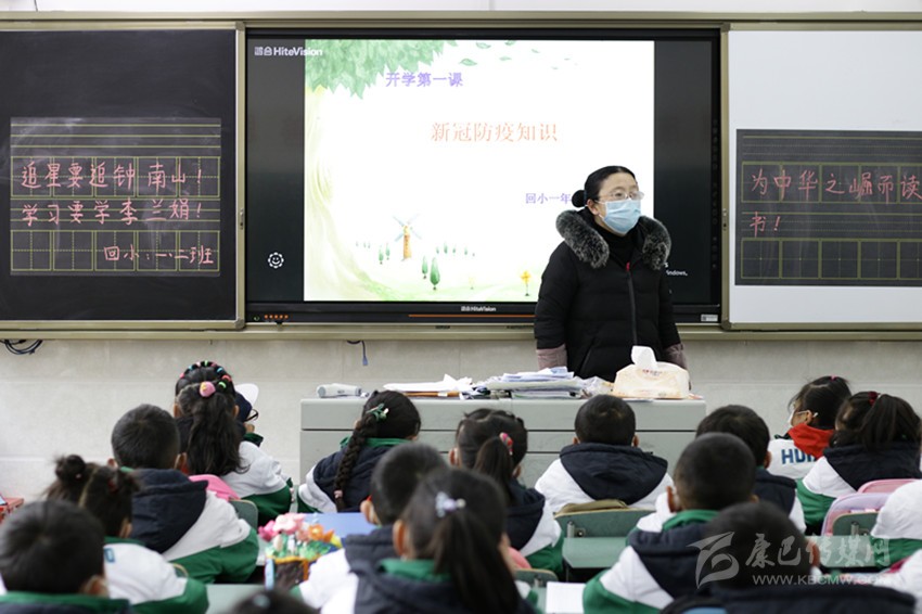 走進熟悉的校園里,遇見久違的老師與同學(xué),即使戴著口罩也遮不住同學(xué)們的激動之情。課堂里,開學(xué)后的第一課不是語文,不是數(shù)學(xué).....而是一節(jié)特別的防疫主題課。