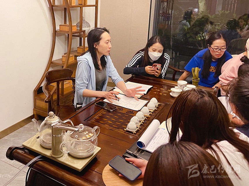 李曉(左一)組織和指導(dǎo)色達的參培教師們進行分組研修學(xué)習(xí)。