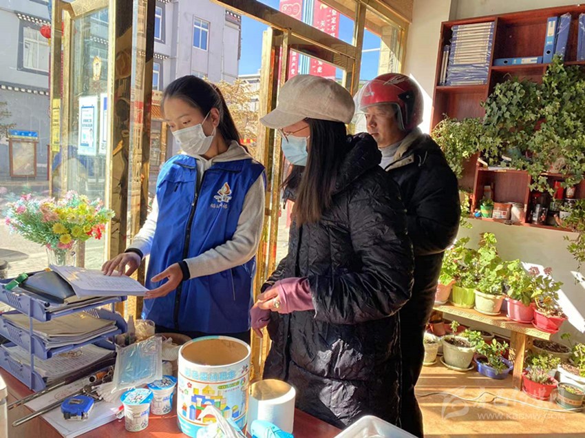 網(wǎng)格員走訪商戶(hù)。