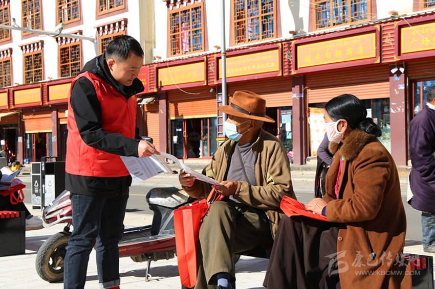 劉植走上街道進(jìn)行志愿服務(wù)活動宣講。