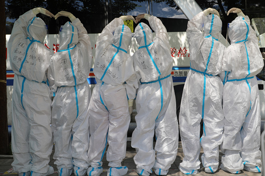 圖為援巴醫(yī)療隊(duì)隊(duì)員比愛(ài)心為巴塘加油。