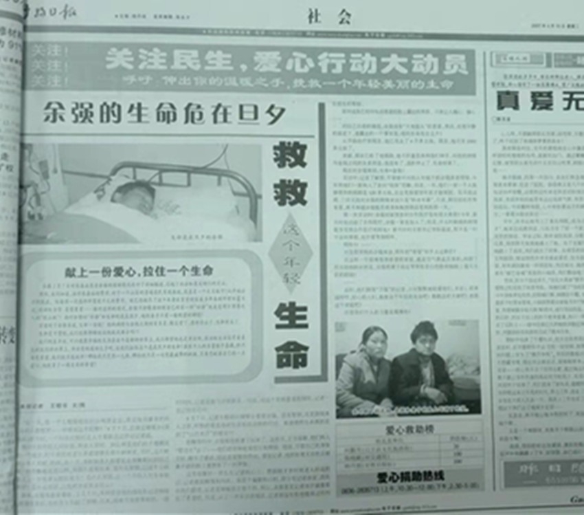 那時,當(dāng)記者將能走訪的部門都走訪完,將能為余強(qiáng)爭取的資金都爭取后,深感愧對余強(qiáng)一家。他們將所有的希望都寄托給記者,寄托給報社??墒?,記者和報社卻無法為他們帶來想要的希望。