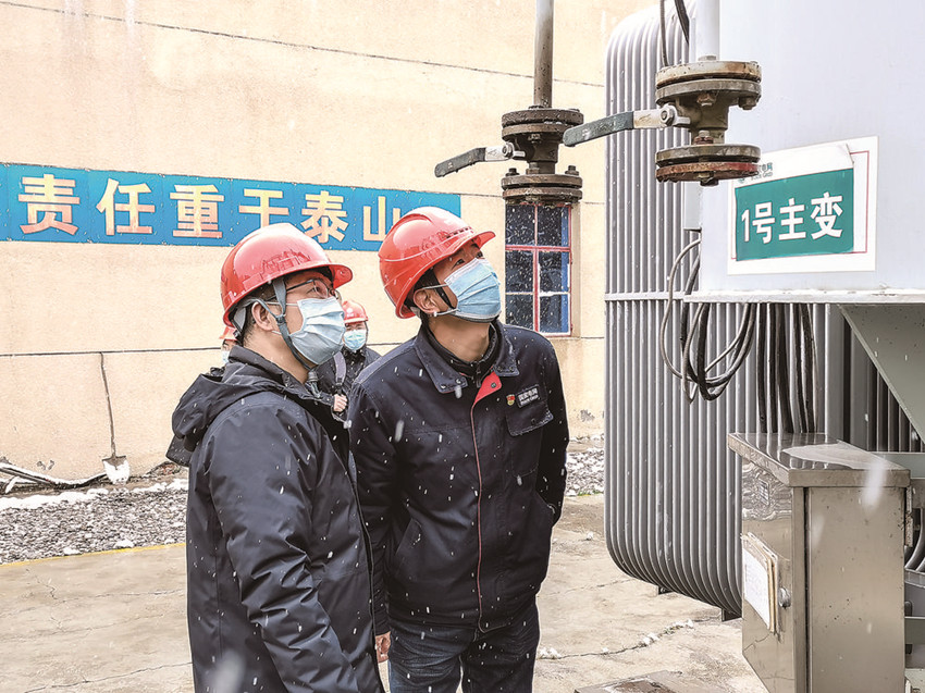 戴林(右)對城南變電站主變進(jìn)行檢查。