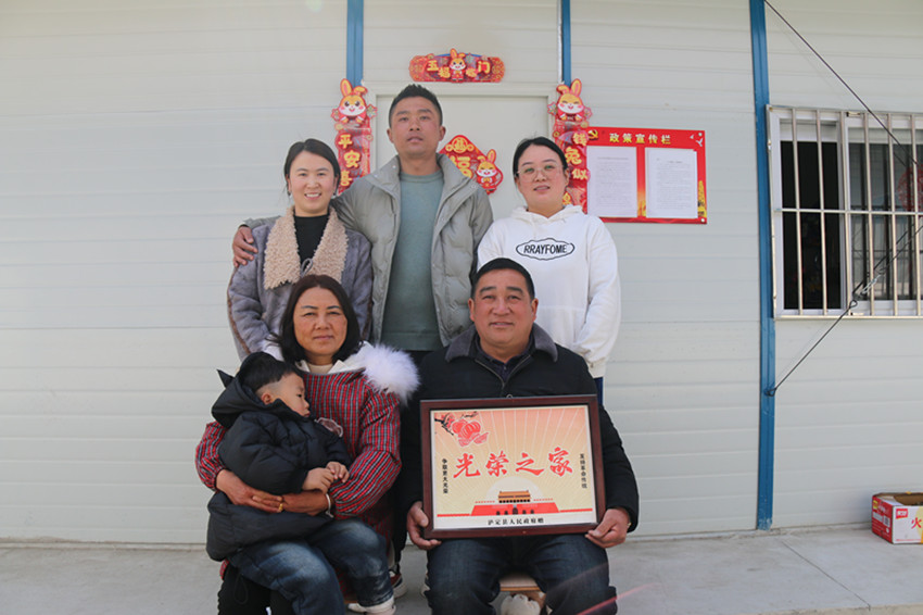 吃晚飯前,甘啟均叫上家里6口人,在板房門前拍了一張“全家福”,照片中三代同框緊緊相偎,“光榮之家”的牌匾格外亮眼。