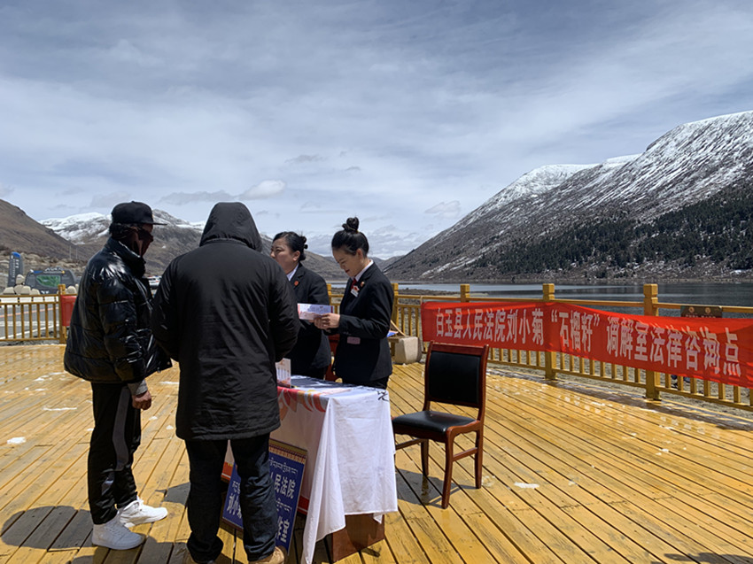 白玉縣法院干警在旅游景區(qū)為游客提供便捷司法服務(wù)。