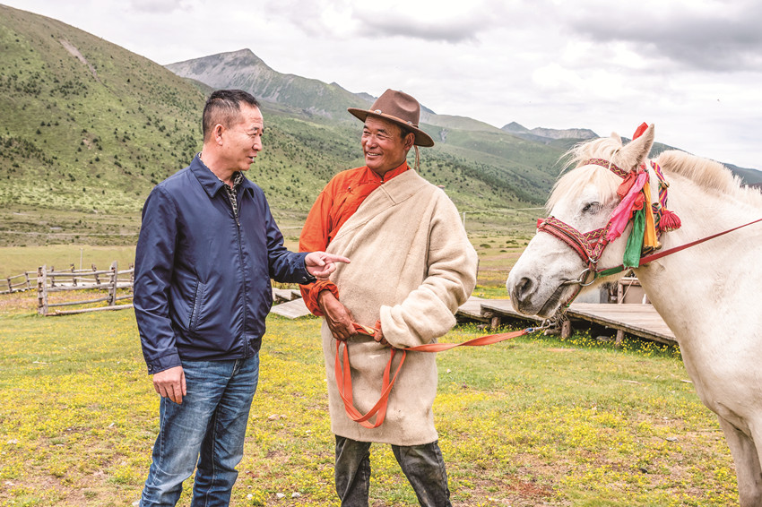 景區(qū)建成后,俄達(dá)門(mén)巴村旅游資源得以盤(pán)活,李華能積極探索“資源變資產(chǎn)、牧區(qū)變景區(qū)、牧民變股民”的扶貧新模式,村集體以集體資產(chǎn)入股,與景區(qū)按1∶4進(jìn)行收益分成,還實(shí)行保底分紅制度,每年為村集體分紅85萬(wàn)元。目前,已有40余名村民成為景區(qū)員工,其中脫貧戶(hù)15人,公司年支出工資達(dá)100多萬(wàn)元。此外,公司每年出資40多萬(wàn)元,為俄達(dá)門(mén)巴一、二村共163戶(hù)、733名牧民全部購(gòu)買(mǎi)醫(yī)療保險(xiǎn)和適齡人員農(nóng)村養(yǎng)老保險(xiǎn),從根本上解決了村民的養(yǎng)老及醫(yī)療保障問(wèn)題。