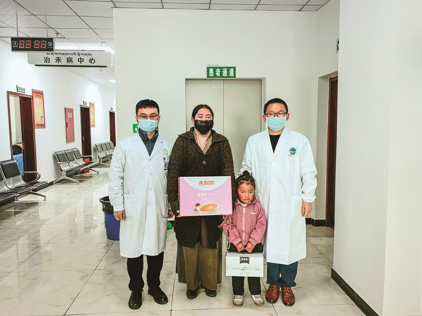 治療同時(shí),詹宇豪還十分關(guān)注朵朵的心理健康。詹宇豪和醫(yī)療團(tuán)隊(duì)其他隊(duì)員經(jīng)常鼓勵(lì)、安慰朵朵,送她小禮物和營(yíng)養(yǎng)品,向家屬宣教康復(fù)注意事項(xiàng)。了解到朵朵的家庭情況后,詹宇豪和醫(yī)療團(tuán)隊(duì)醫(yī)師王巨峰積極協(xié)調(diào)溝通,向巴塘縣中藏醫(yī)院提出申請(qǐng),減免了朵朵的治療費(fèi)用,并通過(guò)千島湖安徽商會(huì)募集到6000元善款,用于朵朵的后續(xù)治療和生活。