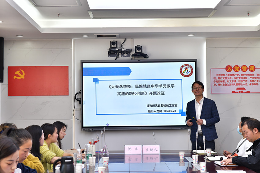 除了以上良策,沈良在擔(dān)任我州名校長(zhǎng)工作室領(lǐng)銜人時(shí),還注重我州教育事業(yè)的全面均衡發(fā)展?;诠ぷ魇页蓡T有來(lái)自九龍、雅江、丹巴、鄉(xiāng)城等地的教育工作者,沈良以州級(jí)課題大概念統(tǒng)領(lǐng):“民族地區(qū)中學(xué)單元教學(xué)實(shí)施的路徑創(chuàng)新”為載體,開(kāi)展了系列活動(dòng)探索全州教育教學(xué)改革,高效助力全州教育現(xiàn)代化發(fā)展。
