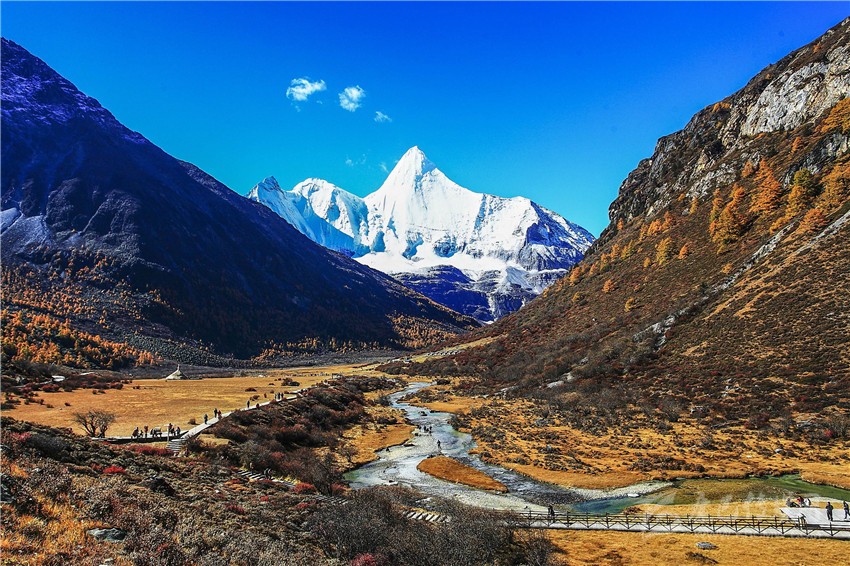 早就聽人說,在四川甘孜藏族自治州有一個天堂般的地方,那就是最后的香格里拉稻城亞丁,吸引著所有喜歡旅游、攝影、熱愛戶外的驢友們的目光,哪里有圣潔美麗的雪域神山,五彩斑斕的高山彩林,連綿起伏的高寒草原、秀美恬適的高山湖泊,更有豐富迷人的藏族風(fēng)情。