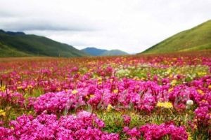 木雅圣地景區(qū)坐落于康定折多山西側(cè)的“木雅辛康”,是一座以民俗風(fēng)情與自然風(fēng)光相結(jié)合的,以體現(xiàn)藏族木雅文化為主題的專題旅游區(qū)。擁有雪山、草原、花海、河流、湖泊和木雅藏族民俗文化等眾多旅游景觀,共有5個主要景點,“花海尋蹤”是當(dāng)年木雅公主很愛游玩之地,也是整個景區(qū)花開得很早很茂盛的地方?!拌笠羲透!笔悄狙诺貐^(qū)享有盛名的藏傳佛教寺廟?!疤旖缒粮琛笔悄狙艊鴤鹘y(tǒng)的冬季放牧之地,這里牧草極為豐富?!胺鹩幽狙拧笔且粋€用經(jīng)幡制作而成的釋迦牟尼佛像?!叭悍鍑痢笔亲o衛(wèi)木雅國的一道天然屏障。