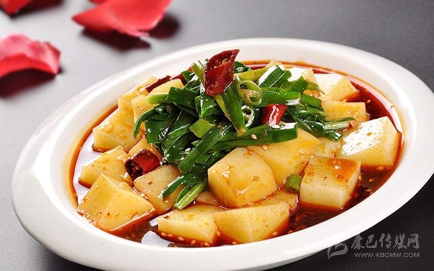 3、攪團(tuán):將清水在鍋內(nèi)燒開后,逐量撒入極細(xì)的玉米面粉,以當(dāng)年新產(chǎn)的小金黃玉米粉為佳,用竹筷攪拌,此時(shí)灶中火要猛,直到攪成糊狀,然后蒙蓋一層新鮮潔凈的芭蕉葉或青菜葉,再蓋上鍋蓋文火蒸20—30分鐘,用大碗盛起;鍋內(nèi)打油湯,燒煮酸油菜湯,其油鹽調(diào)料如一般湯羹(酸油菜即以野生油菜莖葉,洗凈,在開水鍋內(nèi)略煮一下,即撈起置于木盆或瓷盆內(nèi),趁熱壓緊覆蓋閉氣,隔夜后即成一種酸味菜,可炒食,亦可煮湯食,其味略酸而鮮美爽口,并有一種特殊香味,本地人歷來皆愛食之。
