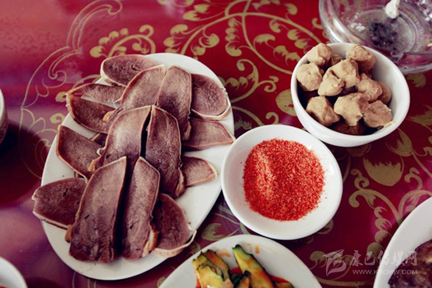 許多藏式餐廳都有蒸牛舌這道菜,其實(shí)是水煮牦牛舌,青藏高原特有的牦牛舌相較普通牛舌,口感更為細(xì)嫩、鮮美。煮好的牦牛舌切片,蘸著特制辣椒醬或者椒鹽,在高原上真是美味解饞。