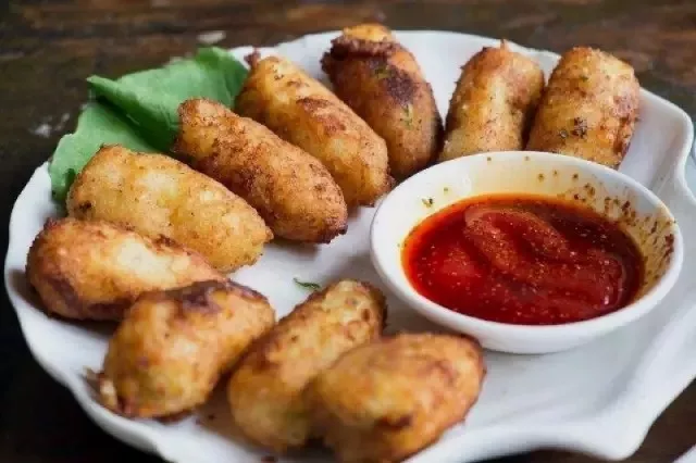 黃金土豆包子略帶有一絲異國風情,土豆泥是其外衣、內包裹牛肉餡兒。再裹一層雞蛋和面包糠,放入油中炸熟,土豆泥外衣成黃金色,酥脆可口,牛肉餡味道被全部包裹在內部,肉香味十足。