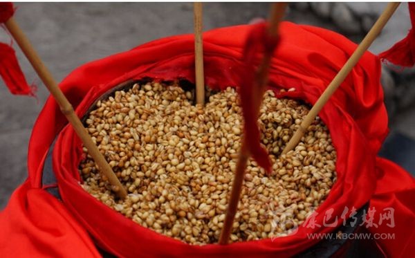 嘉絨語(yǔ)稱“恰鹵”。咂酒是青稞釀制而成的。首先取一定數(shù)量的青稞粒,一般5斤、8斤或10斤,在大鐵鍋中用水煮成八成熟后,放在簸箕里晾開(kāi),待冷卻后放上一定比例的酒曲,合勻,又裝入大鐵鍋中發(fā)酵三至四天,待聞到酒香味后,裝入壇中并加水,放置一天以上后,即可取汁食用,這個(gè)汁就是咂酒。咂酒味甘甜淳厚,十 分爽口,看似不醉人,但有的甘甜之中略帶苦澀,說(shuō)明酒勁足,不勝酒力者應(yīng)少飲為宜。曾有人寫(xiě)《飲咂酒詩(shī)》說(shuō):“成石雜糧一甕收,王侯到此也低頭,五龍抱住 撐天柱,咂盡黃河水倒流”。充分展示了咂酒的魅力和飲咂酒的那種愜意。境內(nèi)巴底、半扇門(mén)的上半鄉(xiāng)、太平橋鄉(xiāng)一帶的群眾喜愛(ài)煮咂酒,平日,家家都備有咂酒,親朋間禮尚往來(lái)、人情世故都送咂酒。喝咂酒是當(dāng)?shù)氐囊淮罅?xí)俗?!墩鹿韧椭?略)》記載了清朝后期宅壟土屯區(qū)的飲食習(xí)俗時(shí)說(shuō):“夷人(封建統(tǒng)治者對(duì)藏族的貶 稱)寨中置巨甕或木桶,富者大銅瓶盛酒,于內(nèi)植竹竿十余枝,跌坐于地互相吸飲,不杯杓勸酧(酬),無(wú)餚核(指熟食的魚(yú)肉干果),惟各布豬膘、牛肉、‘得木 鳥(niǎo)’(火燒子饃饃),醉飽而散”?,F(xiàn)在,巴底鄉(xiāng)、半扇門(mén)的上半鄉(xiāng)、太平橋鄉(xiāng)的大多數(shù)村寨仍然保留著這些習(xí)俗。在節(jié)日或慶典之時(shí),在大壩子中間放一個(gè)大的壇子或木桶,里面盛滿含有酒糟的咂酒,然后插入麥桿數(shù)根,眾人圍個(gè)大圓圈跳鍋莊,口渴時(shí)依次吸之;或一人手持葫蘆,里盛咂酒,在眾人中依次轉(zhuǎn)之;或眾人盤(pán)腿 圍坐,傳一壺咂酒,稱喝“轉(zhuǎn)轉(zhuǎn)酒”。