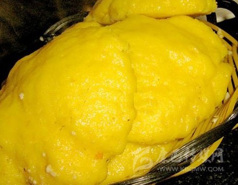 玉米饃是爐城平常人家常食的,就是許多做小生意開小攤鋪,常蒸食玉米饃。雅安人彭大春夫婦,早年曾在康定幫人干活,夫婦善做小吃。爐城大米昂貴,知爐城愛吃玉米,又愛吃“焦粑”(一種以面粉起酥肉餡炕餅的小吃)習(xí)慣,用金鉤鮮肉做餡,仿效“焦粑”的做法,用上等玉米面,創(chuàng)造出玉米面包金鉤炕餅,以其香、咸酥、脆味長(zhǎng)誘人,食者排隊(duì)購(gòu)買,風(fēng)行一時(shí)。