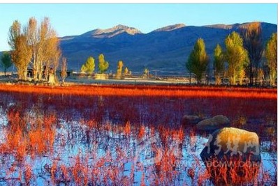 距稻城縣城金珠鎮(zhèn)28公里的桑堆小鎮(zhèn)風(fēng)景綺麗,在公路沿線(xiàn)的牧場(chǎng)開(kāi)闊平展,河流平緩如鏡。遙望遠(yuǎn)處,在起伏的山巒間散落著村落、牧人、牛羊,呈現(xiàn)一派寧?kù)o祥和的景象。公元1144年前,一世噶瑪巴·都松欽巴覺(jué)悟贊譽(yù):“我走遍藏區(qū),來(lái)到此地。這里風(fēng)景秀美,牧草豐茂,六畜興旺,佛光普照。我愿在此修建寺廟成就功德”。金秋十月的桑堆紅草灘總是讓你感覺(jué)膠卷不夠用?!?/p>